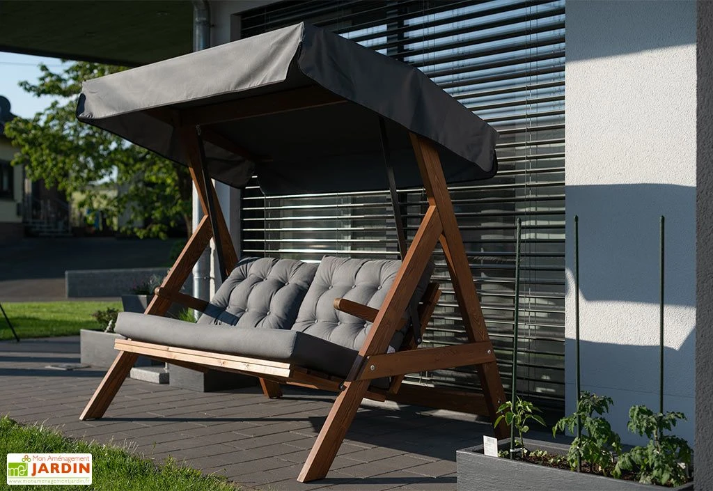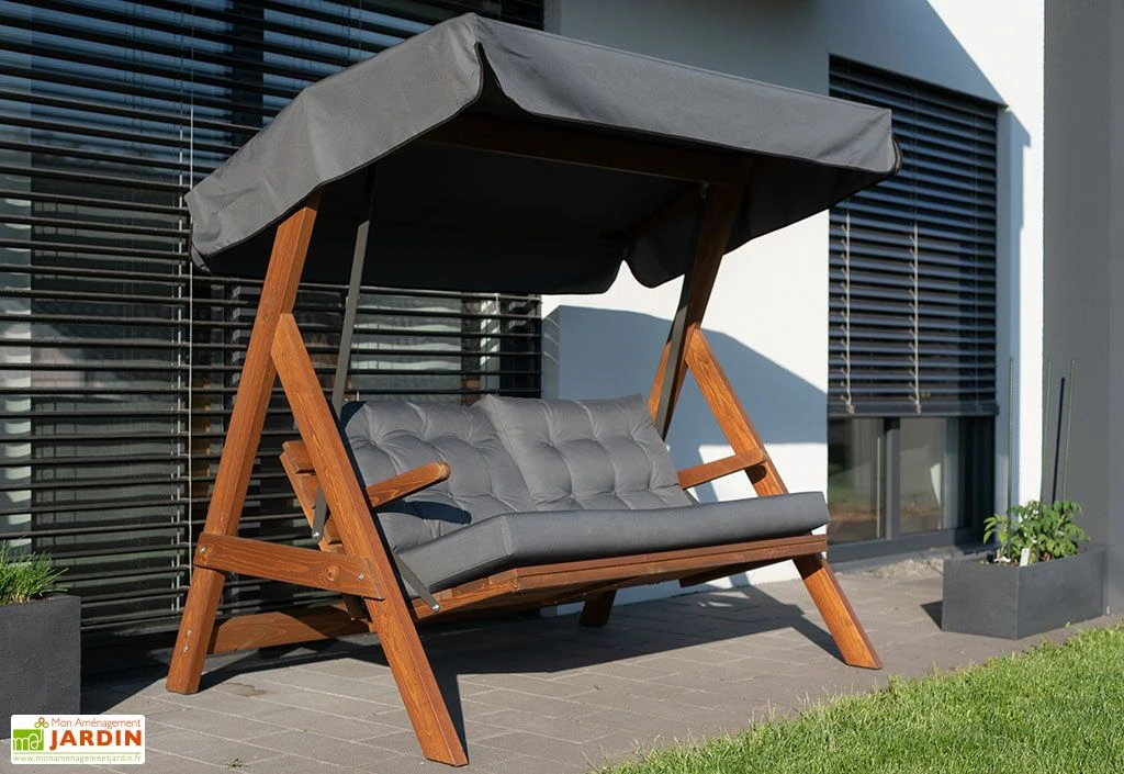 La balancelle de jardin est livrée en kit à monter soi-même avec une notice détaillée. Elle est garantie 2 ans.