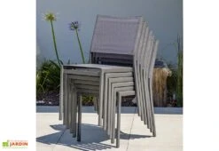 Ce fauteuil de jardin empilable se compose d’une armature en aluminium et d’une assise en textilène couleur lin. Le textilène possède une très bonne résistance au soleil grâce à un traitement de protection contre les UV. Les assises sont également traitées pour résister à l’humidité et aux moisissures.
