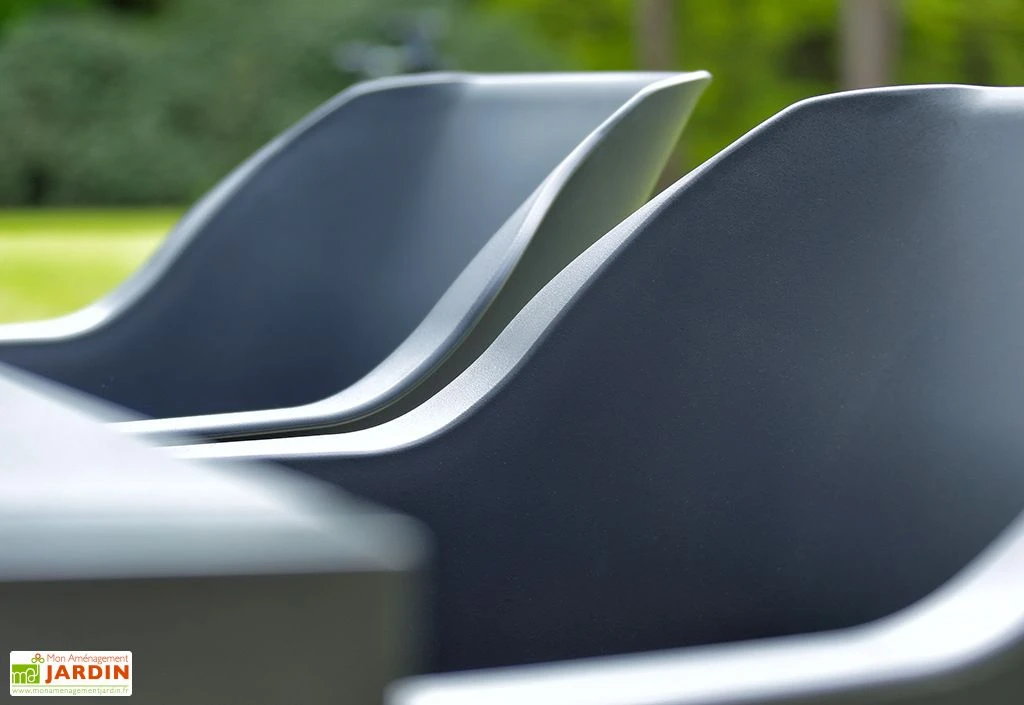 Conçue pour supporter un poids maximum de 130 kg, cette chaise de jardin est à la fois solide et confortable. Elle affiche des dimensions de 59 x 62 cm, pour 84 cm de haut, et possède une assise de 44 x 62 cm. Elle est également très légère (5 kg par chaise) et pourra être facilement déplacée ou rangée une fois l’hiver venu. Notez enfin la présence d’un système de drainage, pour éviter toute eau stagnante après une averse.