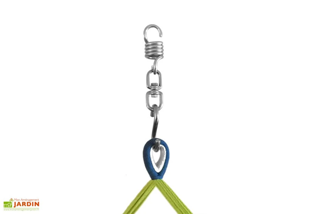 Le kit de suspension a été pensé pour permettre une rotation à 360° de la chaise sans que ses sangles ne s’emmêlent ou que la fixation ne se dévisse. Il est également conçu pour que le siège puisse se balancer de façon parfaitement silencieuse. Notez que ce kit de fixation devra être commandé en même temps qu’une chaise suspendue Hamac de Sol. Il ne pourra être vendu seul.