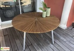 La table est livrĂ©e en kit t bĂ©nĂ©ficie dâune  garantie de 5 ans contre la moisissure et les insectes.