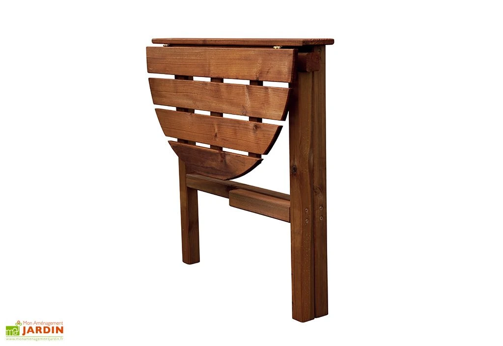La table de jardin pliable est fabriquée en bois de pin teinté dans un coloris marron et traité autoclave lui offrant une excellente résistance aux différentes agressions extérieures telles que les intempéries, les insectes ainsi que la moisissure. Le bois est certifié FSC, un sigle qui signifie qu’il provient de forêts gérées dans le respect de l’environnement. La table en bois mesure 70 cm de longueur sur 45,5 cm de largeur pour 71 cm de hauteur.