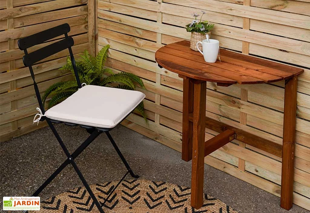 Cette table de jardin de la gamme Adapt de chez Jardipolys trouvera une place de choix dans des petits espaces extérieurs. Elle est entièrement pliable au niveau du pied central et du plateau arrondi permettant ainsi d’optimiser au maximum votre espace. La table pliable peut accueillir jusqu’à deux personnes sans aucun soucis. Pour une stabilité parfaite, il est recommandé de fixer les deux pieds à un mur ou un garde-corps.