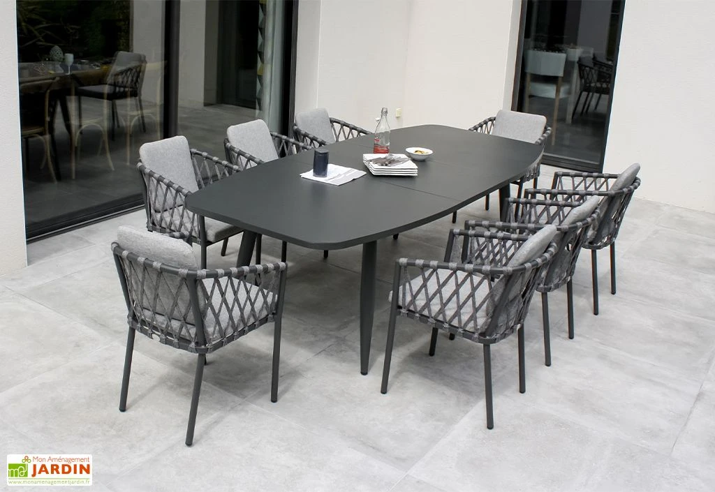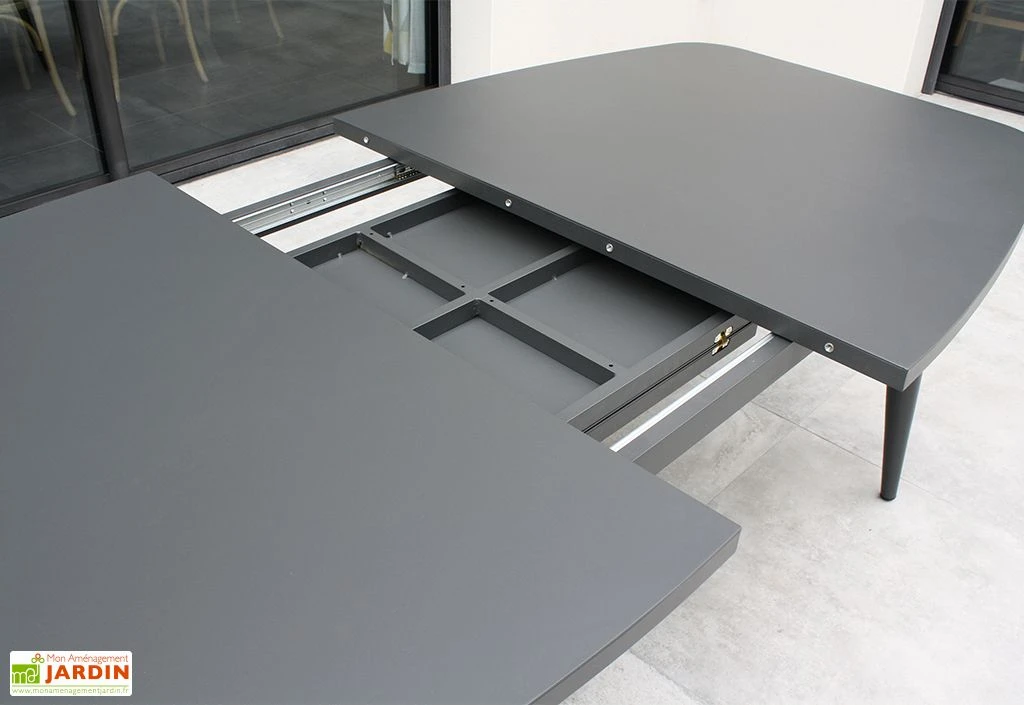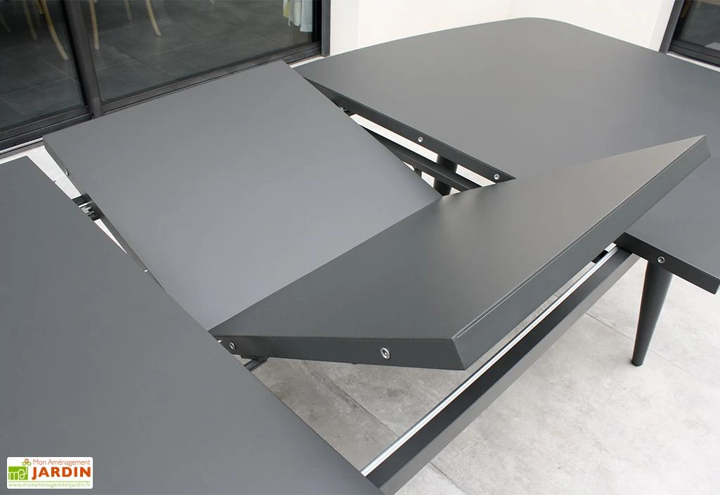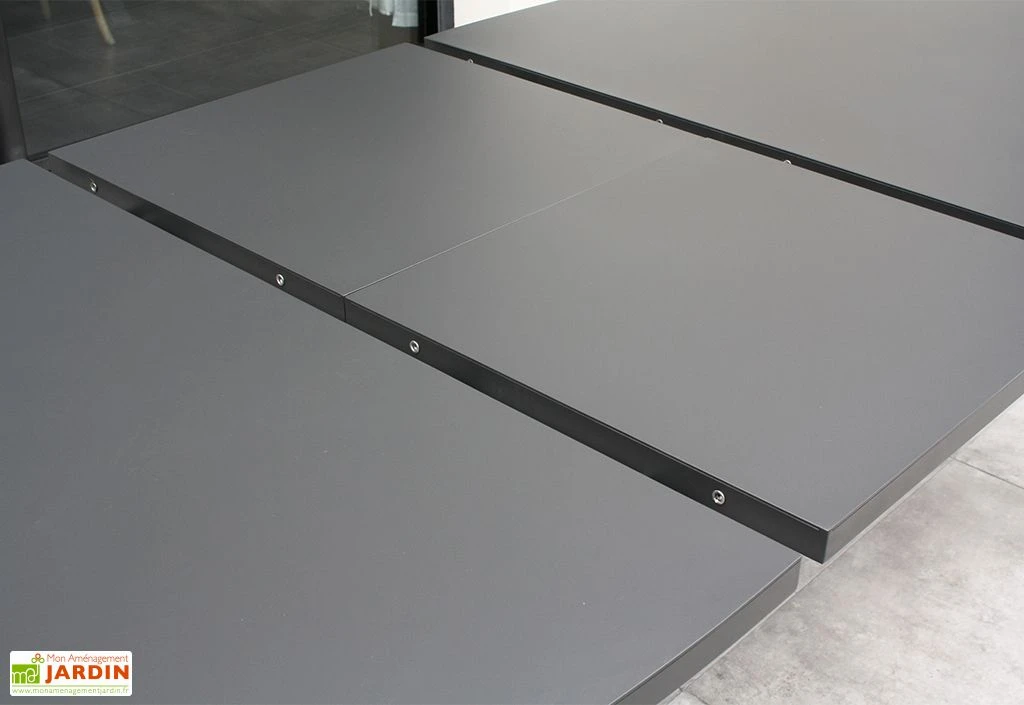 La table de jardin à rallonge Pilat de chez Paris Garden est entièrement fabriquée en aluminium couleur gris anthracite. Parfaitement adapté pour l’extérieur, ce matériau possède l’avantage de ne craindre ni la rouille, ni les intempéries, et ce sans exiger d’entretien ou de traitement particulier.
