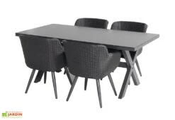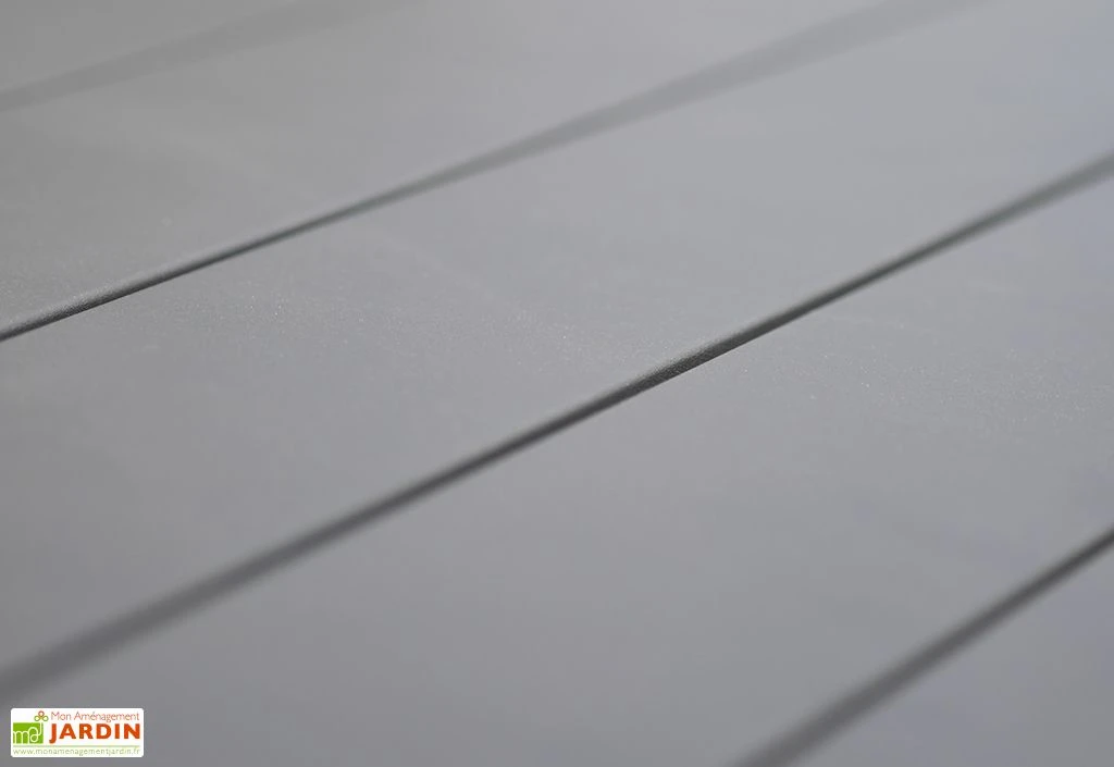 La table de jardin de DCB garden est entièrement en aluminium gris anthracite. Elle mesure 240 cm de longueur, 100 cm de largeur et 77 cm de hauteur. Elle est équipée d’une rallonge lui permettant de passer de 240 cm à 300 cm et recevoir jusqu’à 12 personnes autour de la table. La table pèse 44 kg. L’aluminium est un matériau qui ne demande aucun entretien puisqu’il ne rouille pas et ne pourrit pas. Attention, les fauteuils ne sont pas inclus, vous pourrez les retrouver dans la rubrique « Accessoires » de cette page. La garantie est de deux ans.