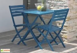 La table de jardin rectangulaire Bistrot de la marque Chalêt-Jardin est dotée d’un plateau de 110 cm de long pour 70 cm de large, ce qui lui permet d’accueillir dans de bonnes conditions jusqu’à quatre personnes. Elle pourra également être repliée lorsque vous ne l’utilisez pas afin de n’occuper que peu d’espace.