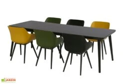 Entièrement fabriquée en acier, cette table à manger de jardin est recouverte d’une peinture époxy de couleur grise qui se chargera de la protéger contre les intempéries et la rouille. Aucun entretien n’est alors à prévoir. Notez enfin que cette table d’extérieur ne pèse que 10 kg, ce qui lui permet d’être déplacée facilement si besoin.