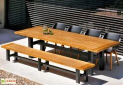 Ces deux tables de jardin vendues en duo à la structure minimaliste possèdent des dimensions de 74 cm de largeur et 40 cm de hauteur pour l’une, et 49 cm de largeur et 35 cm de hauteur pour l’autre. L’ensemble de ces deux tables basses au style chic et épuré fait au total 22 kg. Ses deux plateaux sont fabriqués en aluminium et le piètement est en acier.