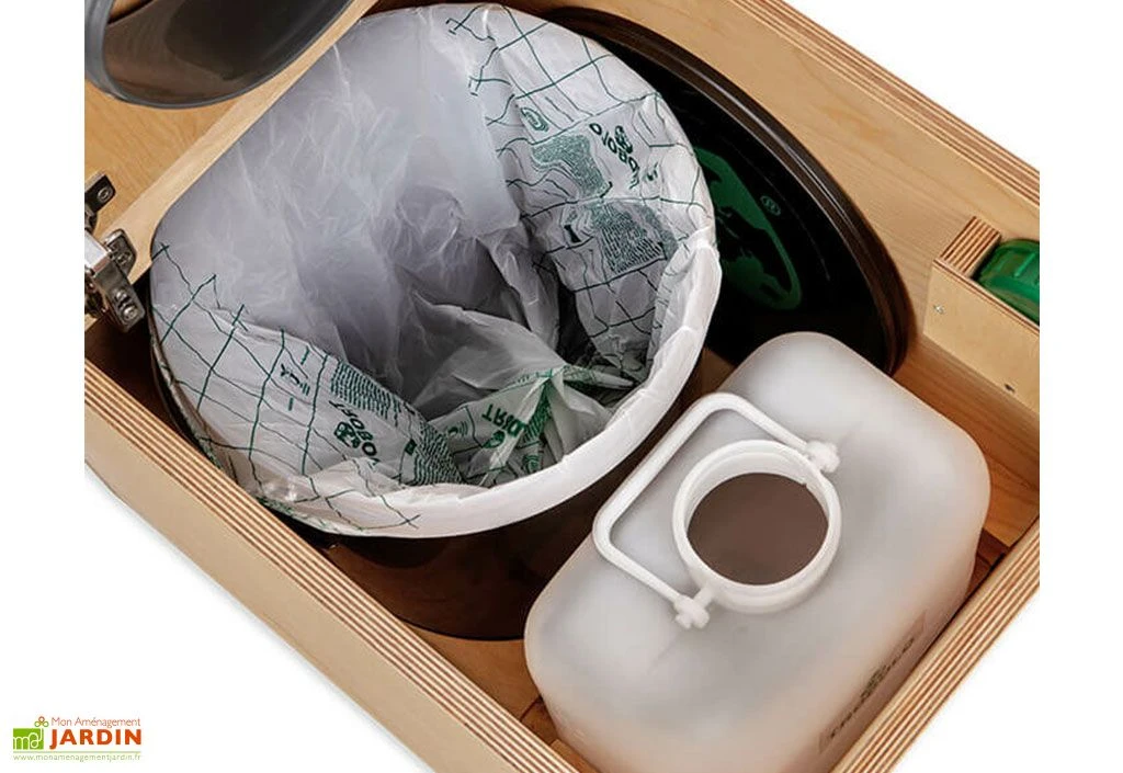 Ces toilettes sèches sont équipées d’un séparateur en plastique traité disposé directement dans la cuvette. Son rôle : séparer les matières liquides des matières solides, chacune étant redirigée vers un réservoir qui lui est propre. Le bac dédié aux matières solides possède une capacité de 22 L tandis que le réservoir à matières liquides pourra contenir jusqu’à 10 L d’urine. Le premier est prévu pour 30 à 40 utilisations et devra être vidangé tous les 5 à 10 jours tandis que le second conviendra pour 30 à 50 utilisations et devra être vidé tous les 3 ou 4 jours.